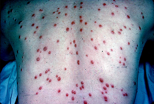 Second stage symptoms may also include fever, sore throat, and headaches. Once the second stage symptoms disappear, the disease progresses into the latent stage that may lead to damage of the cardiovascular and neurological systems. This damage may eventually lead to death.